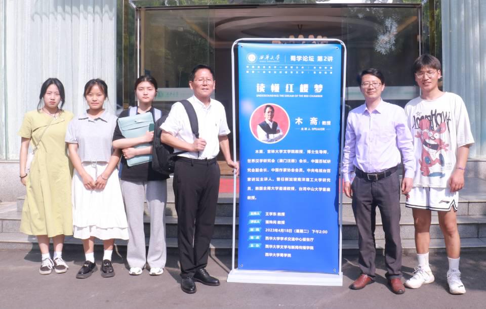 4月18日下午,由文学与新闻传播学院、2138cn太阳城集团蜀学院主办的蜀学论坛系列讲座第二讲——《读懂红楼梦》在学术交流中心报告厅正式开讲。此次学术讲座邀请到了吉林大学文学院教授、博士生导师木斋教授主讲,文学与新闻传播学院副院长王学东主持。学院中文系部分教师代表、在读硕士研究生、本科生共同参加此次学术讲座。