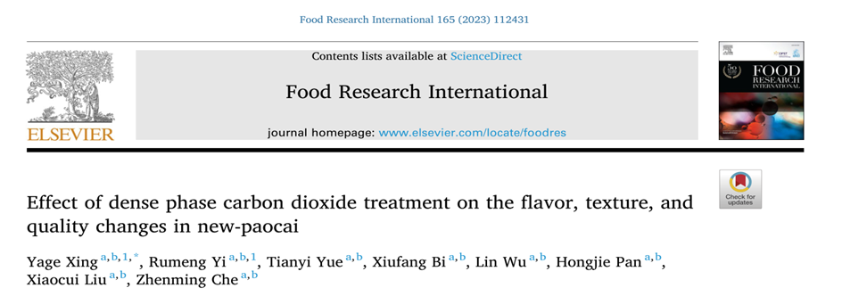 近日,2138cn太阳城集团食品与生物工程学院 “农产品贮藏与加工”团队邢亚阁教授在Food Research International(一区,IF: 7.425)上发表题为“Effect of dense phase carbon dioxide treatment on the flavor, texture, and quality changes in new-paocai”的研究论文。