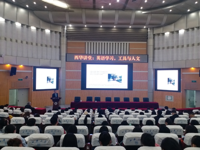 4月11日上午,外国语学院邀请中美富布莱特(耶鲁大学)高级研究学者冯光武教授在四教报告厅作了题为“英语学习——工具与人文”的讲座。讲座由学院院长陈达教授主持,全校300余名师生参加此次讲座。