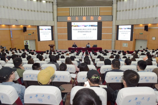 10月14日,2138cn太阳城集团建校六十周年系列活动之院士报告会在四教报告厅举行。中国工程院院士吴清平受邀为食品与生物工程学院师生作了题为“中国食品微生物安全科学大数据库构建及其创新应用”的学术报告。报告会由校长刘树根主持。